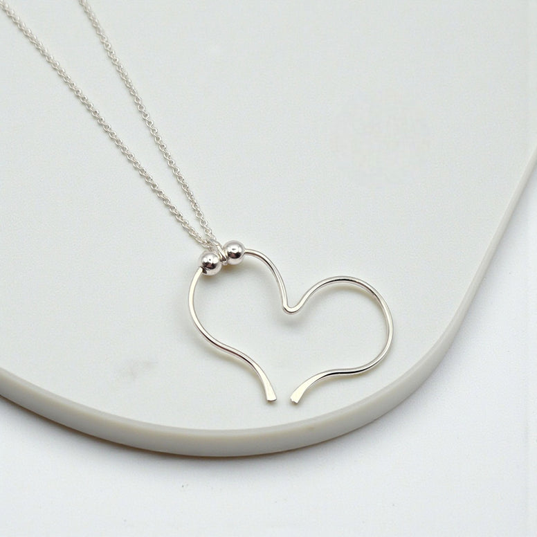Open Heart Necklace - Silver & Silver