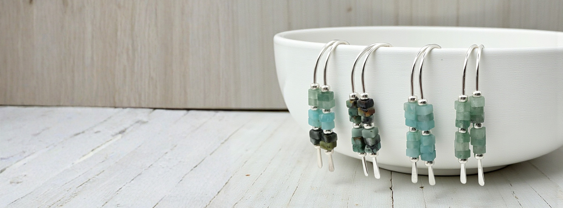 Soft, serene, and endlessly calming—Ocean Sunset reflects the quiet beauty of coastal evenings. Featuring Amazonite, Turquoise, and Green Aventurine, these pieces bring a fresh, airy feel with natural blues and greens reminiscent of sea and sky.