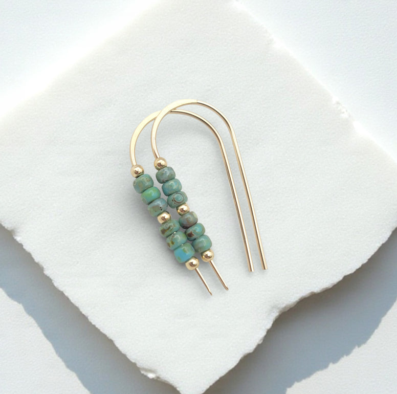Add a touch of luxurious sparkle to your look with these elegant gold & turquoise earrings! Lightweight miyuki seed beads are threaded on a gold chain, giving them a graceful dangle. Be the envy of all your friends with these stunning statement earrings!