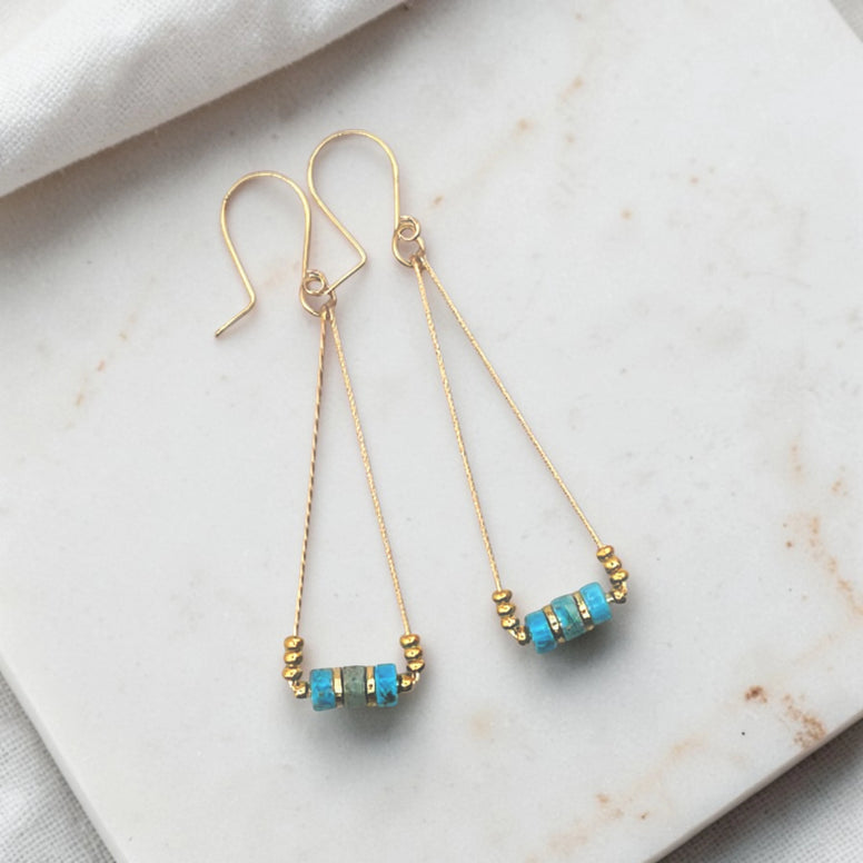 Gold and Turquoise Triangle Dangle Earrings